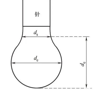式中,γ為界面張力,mN/m;,Δρ為兩相密度差,kg/m3;g為重力加速度,g=9.80 m/s2;de為懸滴最大直徑,m。油滴尺寸如圖1標(biāo)注,ds為距油滴頂點垂直距離為de處油滴截面直徑,m。1H可由Andreas等建立的函數(shù)表得到。