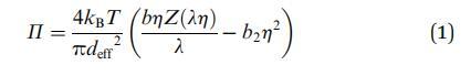 吸附在流體-流體界面上的粒子與 并產生表面壓力 (P),即 3D 系統(tǒng)中壓力的 2D 模擬。 通過擴展這個 進一步類比,也可以將這個表面壓力聯(lián)系起來 通過狀態(tài)方程到其他狀態(tài)參數(shù),如數(shù)密度和溫度。 用于吸附膠體顆粒 在流體-流體界面上,最簡單的近似可能是 2D硬盤。 狀態(tài)方程 (EOS) 為一個 組件系統(tǒng)根據(jù)密度相關性給出 壓縮系數(shù) Z。文獻中充滿了 提供表達的多種方法 EOS 2D 硬盤液。 Mulero 等人 27,28 提供了一個簡潔的 回顧和比較所有這些狀態(tài)方程。