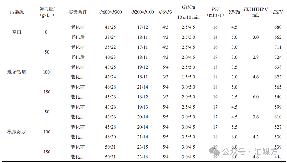 環保非水基鉆井液界面張力、基本性能和抗污染能力——結果與討論、結論與認識
