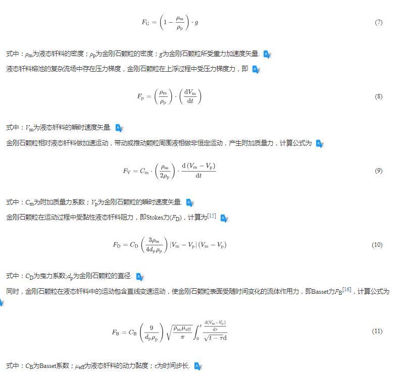 金剛石顆粒相對液態(tài)釬料做加速運動,帶動或推動顆粒周圍液相做非恒定運動,產(chǎn)生附加質(zhì)量力,計算公式為