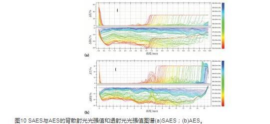 圖10 SAES與AES的背散射光光強值和透射光光強值圖譜(a)SAES;(b)AES。