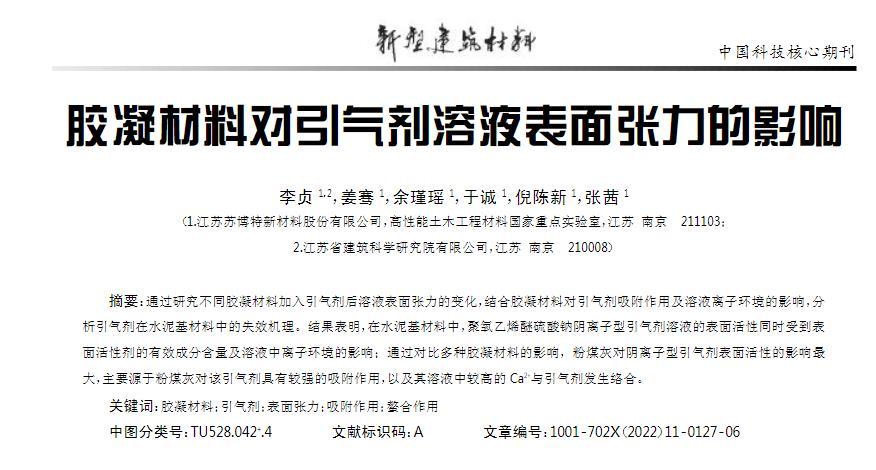 本文研究了混凝土中常用的膠凝材料組分(水泥、粉煤灰、礦粉、硅灰)對引氣劑引氣作用失效的影響機(jī)制,根據(jù)溶液表面張力的變化評價引氣劑在不同膠凝材料水泥基材料中的起泡性能。