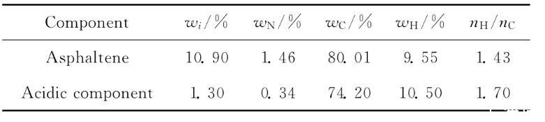 勝利原油中瀝青質及酸性組分的含量及其元素分析結果列于表1。