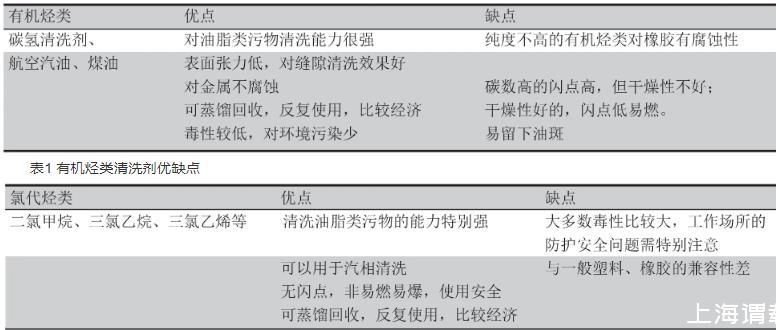 表2氯代烴類清洗劑優缺點