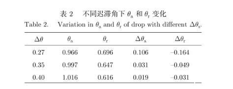 表2不同遲滯角下θa和θr變化