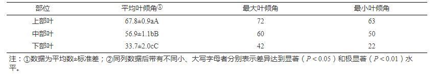 葉傾角對霧滴沉積的作用強(qiáng)于葉面結(jié)構(gòu),在噴施農(nóng)藥時(shí)應(yīng)優(yōu)先考慮。表1表明,成熟期煙株上部葉傾角大多集中在60°~70°之間;中部葉傾角居中,集中在50°~60°之間;下部葉傾角較小,集中在20°~40°之間。