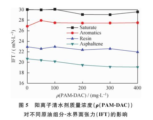 圖5陽離子清水劑質量濃度(ρ(PAM-DAC))對不同原油組分-水界面張力(IFT)的影響