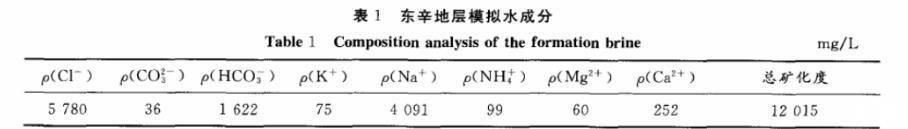 實驗原料為勝利油田東辛采出原油。航空煤油為北京化學試劑公司,室溫下與重蒸后的去離子水的界面張力約為40 mN/m;實驗用水為經重蒸后的去離子水配制的東辛地層模擬水,其主要成分見表1。