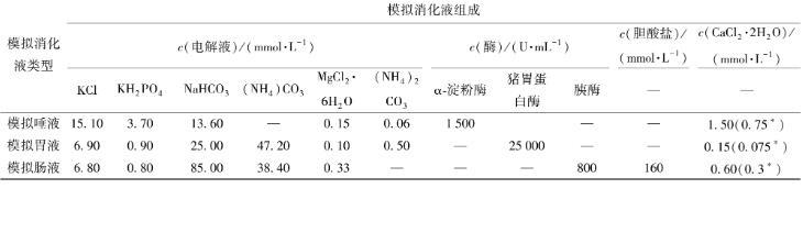 括號中帶*數字為最終消化混合物中相應的Ca2+濃度。