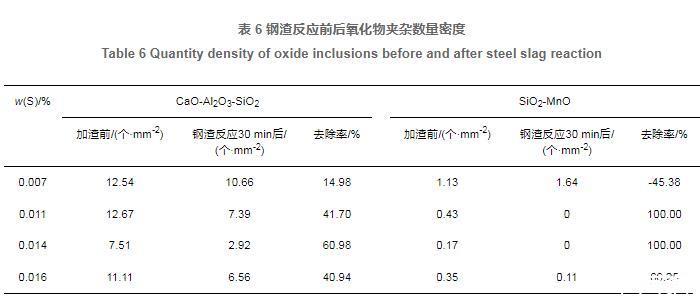 表6鋼渣反應前后氧化物夾雜數量密度