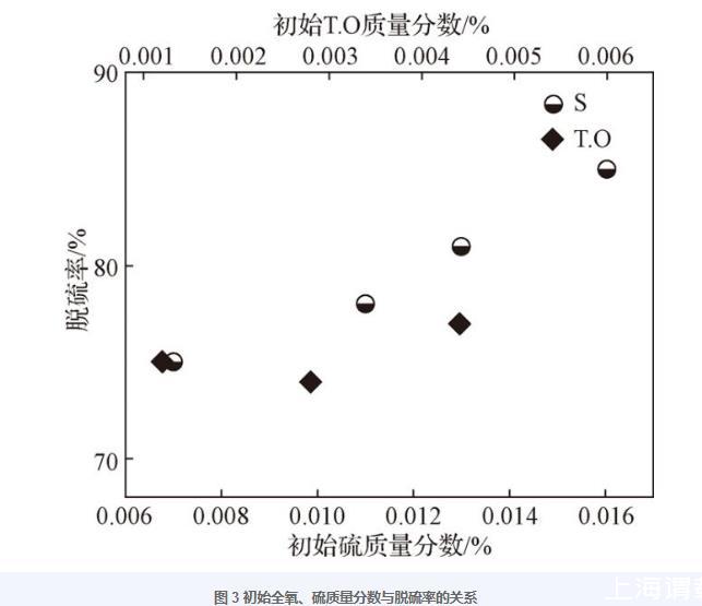 2.1鋼中氧、硫含量對脫硫的影響