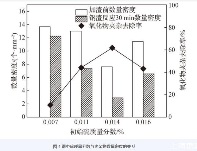 圖4鋼中硫質量分數與夾雜物數量密度的關系