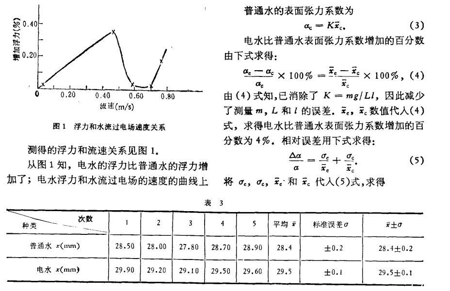 結果,電水比普通水表面張力系數增加的百分數為4%±1%。