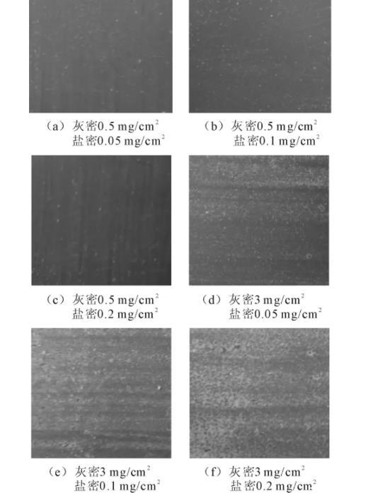 憎水角測量所用的硅橡膠試片的尺寸為100 mm×100 mm×5 mm。試驗中為了保證試片處于相同環境中,用清水對試片進行清洗,并用酒精擦拭后用無紡布擦干。本試驗中的涂污方式采用固體層法中的定量涂刷法,根據IEC規程中的污層分級設置,選用灰密為0.5、3mg/cm2,鹽密值選用0.05、0.1、0.2 mg/cm2,分別代表污穢程度為“中、重、非常重”的污穢等級。涂污之前先進行打灰處理,再將污液均勻涂抹在試片上。將涂污后的試片和潔凈試片放入相同環境中,如圖2所示。