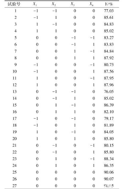 2.2.1響應面試驗設計及結果