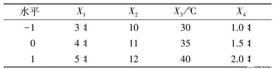 表1響應面試驗因素水平