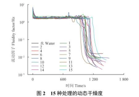 表2 15種處理的靜態(tài)表面張力數(shù)據(jù)