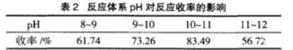 表2反應體系pH對反應收率的影響