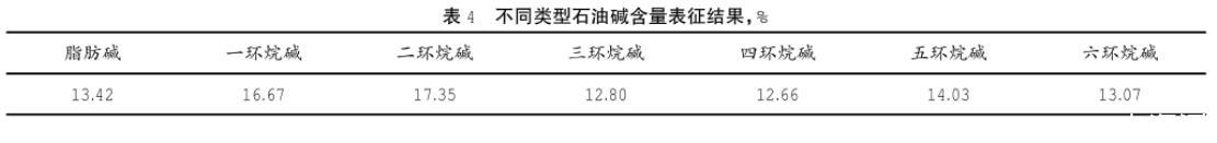 表4不同類(lèi)型石油堿含量表征結(jié)果,%