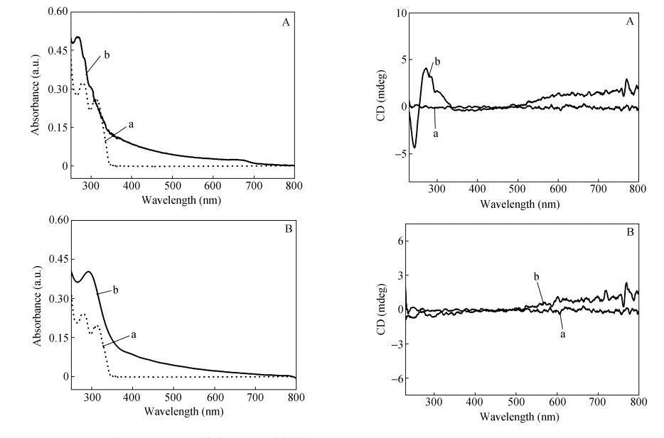 這個位置對應(yīng)于香豆素基團的吸收帶,因此歸屬于香豆素基團的CD信號。在CODA單體LB膜中,香豆素基團間形成了緊密的H-聚集,而且由于相鄰兩個芳香環(huán)受到π-π體系間靜電斥力的影響以"面對面"重疊排列的可能性很小,通常存在錯位。在單分子膜壓縮過程中,香豆素基團間強烈的π-π堆積形成螺旋排列,并且由于過度擠壓,體系鏡面對稱性被打破,某一方向的螺旋堆砌結(jié)構(gòu)在LB膜中占主導(dǎo)地位,從而產(chǎn)生超分子手性。需要指出的是,CODA單體LB膜手性信號強度和方向與沉積過程密切相關(guān),即不同批次制備出的LB膜手性信號強度大小不一甚至是方向相反。換句話說CODA單體LB膜形成的螺旋結(jié)構(gòu)方向是隨機的。但是對于CO2DA單體LB膜,分子排列較松散,存在局部的缺陷,香豆素基團間無法形成緊密有序的規(guī)整排列,沒有觀察到明顯的CD信號(圖5(B))。