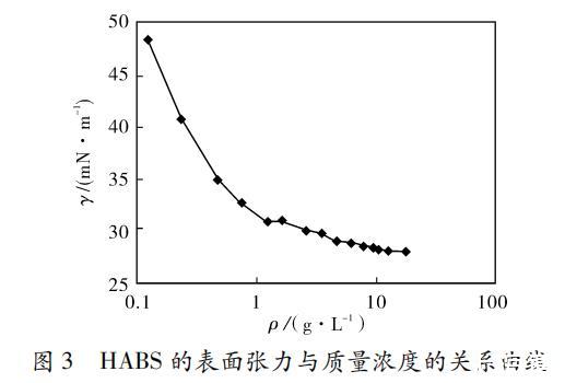圖3 HABS的表面張力與質(zhì)量濃度的關(guān)系曲線