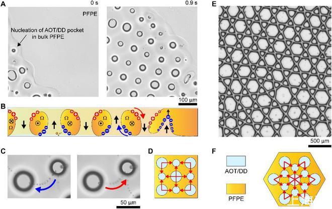 在這項研究中,團隊將油與多種具有不同介電常數和電導率的液體混合后,通過施加電場,界面發生剪切,會脫離平衡狀態,產生有趣的結構。液滴形成了許多出乎意料的圖案,可被控制成為方形或六邊形,每條邊都是筆直的,這在自然界中幾乎是不可能的。