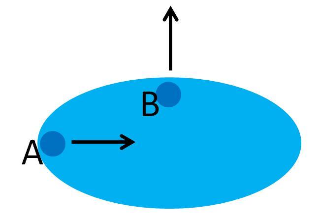 如下圖,為什么水分子A會(huì)向中心運(yùn)動(dòng),而水分子B卻遠(yuǎn)離中心?