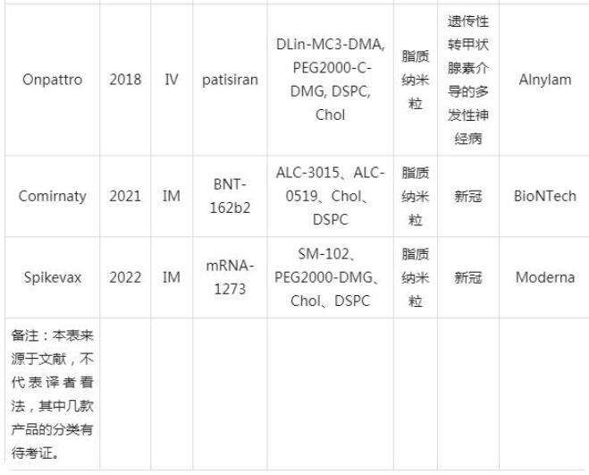(1)基于脂質(zhì)納米粒的上市產(chǎn)品