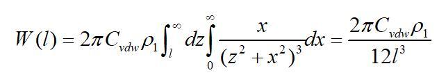 若取l為物質(zhì)本體內(nèi)分子間的距離d11,且兩半無限體為同一種物質(zhì)時,則上式的互作用勢變?yōu)椋ㄈ〗^對值