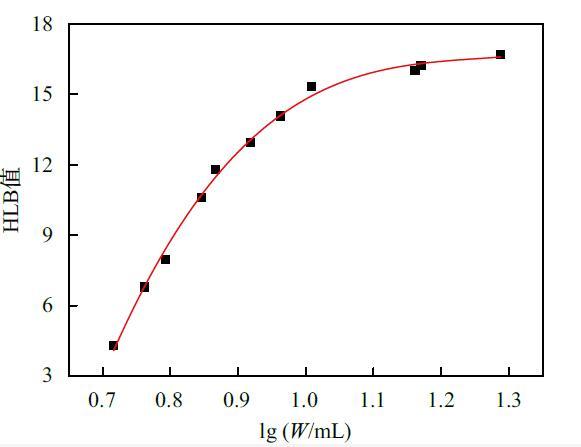 式中,Y為表面活性劑的HLB值;X為lg(W/mL),即表面活性劑測得的水數取對數值。