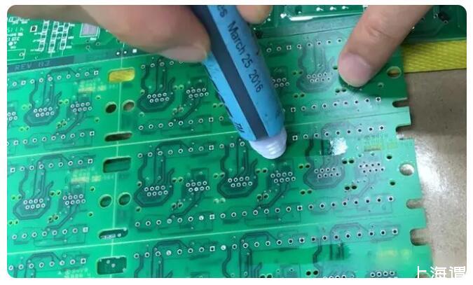 測量PCB表面的張力主要是通過便攜式的測試筆,里面含有特定的張力測試液體,像是通常我們使用的大頭油性筆似的,測試時(shí)只要輕輕在需要測試的表面畫一條直線,待2-3秒鐘過后,觀察畫的直線是否附著均勻,沒有收縮成水珠狀,說明達(dá)到了該測試筆設(shè)定的張力,張力的單位為達(dá)因/厘米(dyne/cm),有時(shí)又稱測試筆為達(dá)因筆。具體測試筆品牌這里就不給做廣告了,這個(gè)測試在市面上也很容易買到。測試的方法也比較簡單,為了確定張力的范圍,一般必須準(zhǔn)備至少2只測試,一般測試的張力區(qū)間在+/-2達(dá)因/厘米之間。