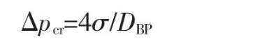 當(dāng)采用篩網(wǎng)作為表面張力貯箱推進劑管理裝置的毛細(xì)元件時,篩網(wǎng)所能維持的最大靜壓力即為篩網(wǎng)的泡破點值Δpcr,也就是氣體穿過篩網(wǎng)時所需的壓差,其關(guān)系式見公式1: