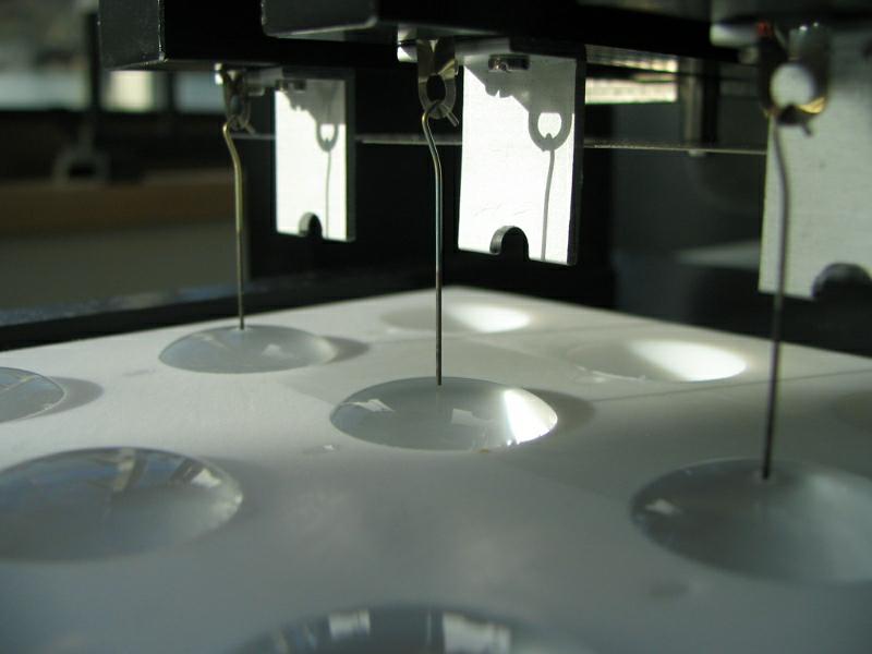 為了給用戶提供最為精確的表面張力/表面壓力,Kibron發(fā)展了一種新的精度超過0.2微克的微量天平,這種靈敏度與“最大拉力”原理相結(jié)合進(jìn)行測量。測量時(shí)先將一個(gè)探針浸入到界面,然后慢慢拔出,記錄彎液面(粘附在探針上的液面)的重量,該重量用于計(jì)算表面張力。